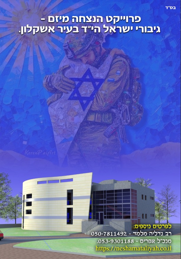 אנו תקווה שבעזרתכם אם ירצה ה' נוכל להרבות ולהרחיב מגוון הפעילויות שלנו גשמית ורוחנית גם יחד לאחינו בני ישראל עולי חבר העמים הגרים בעיר אשקלון ונזכה ביחד איתכם לבנות מרכז רוחני-קהילתי לעולים דוברי רוסית גדול ומפואר ולהפיץ את אור היהדות בליבם של אחינו היקרים מתוך שפע רוחני וגשמי גם יחד .